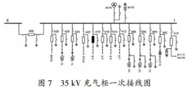 在某變電站結(jié)合新投設(shè)備初度停電檢修時對35kV充氣柜進行了例行實驗,包含交流耐壓實驗、回路電阻查驗和斷路器機械特性查驗。35 kV充氣柜一次接線圖如圖7所示。